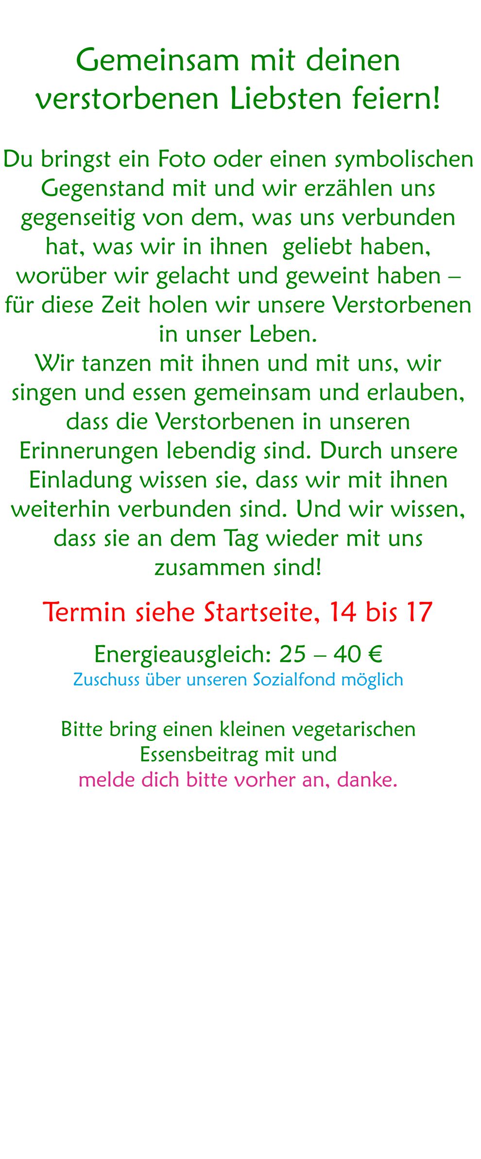 Mit den Verstorbenen als lebendige Teile unserer (Seelen)Familie feiern