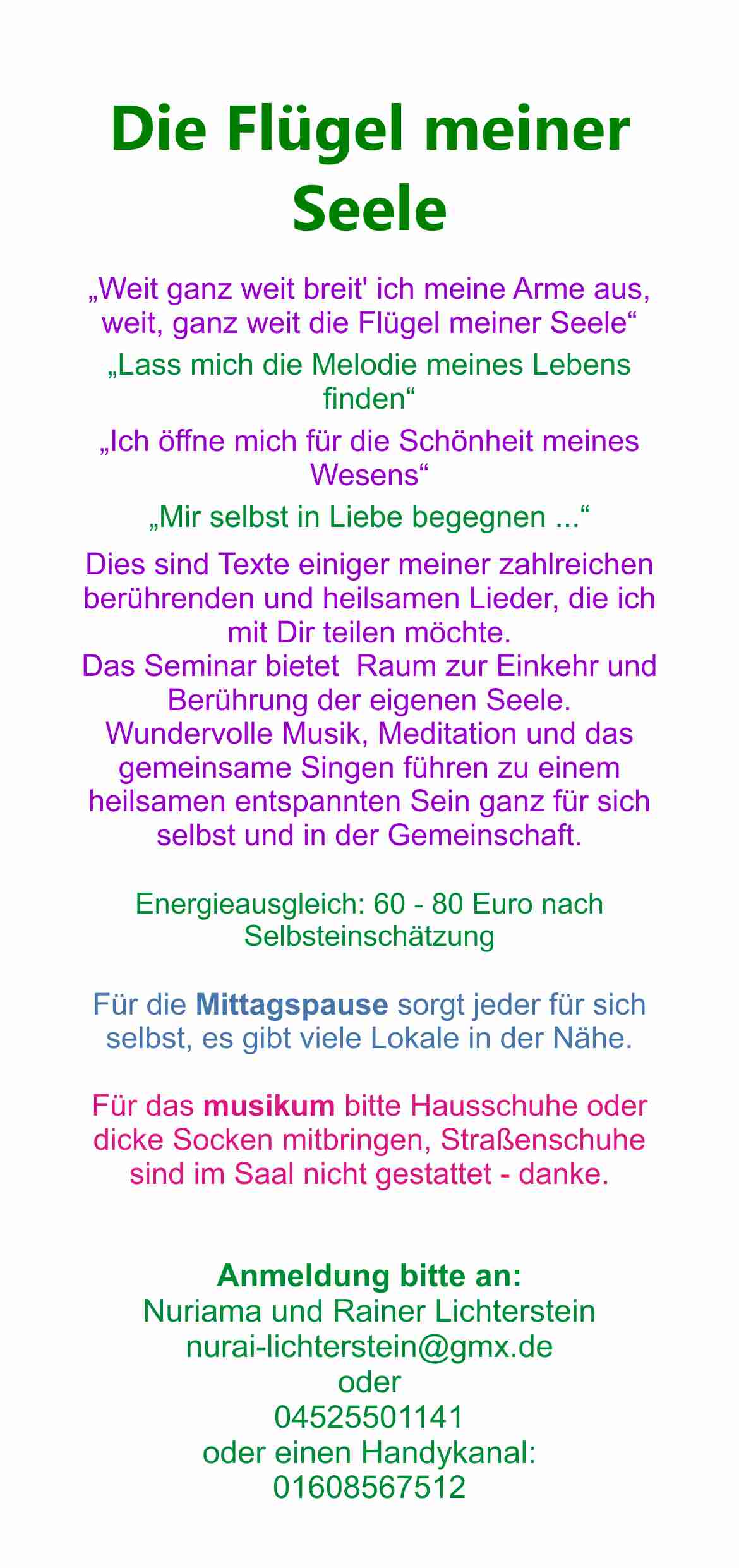 Anmeldung: über uns per Mail oder 04525501141 (AB) oder 01608567512 (WhatsApp, Telegram, Signal)